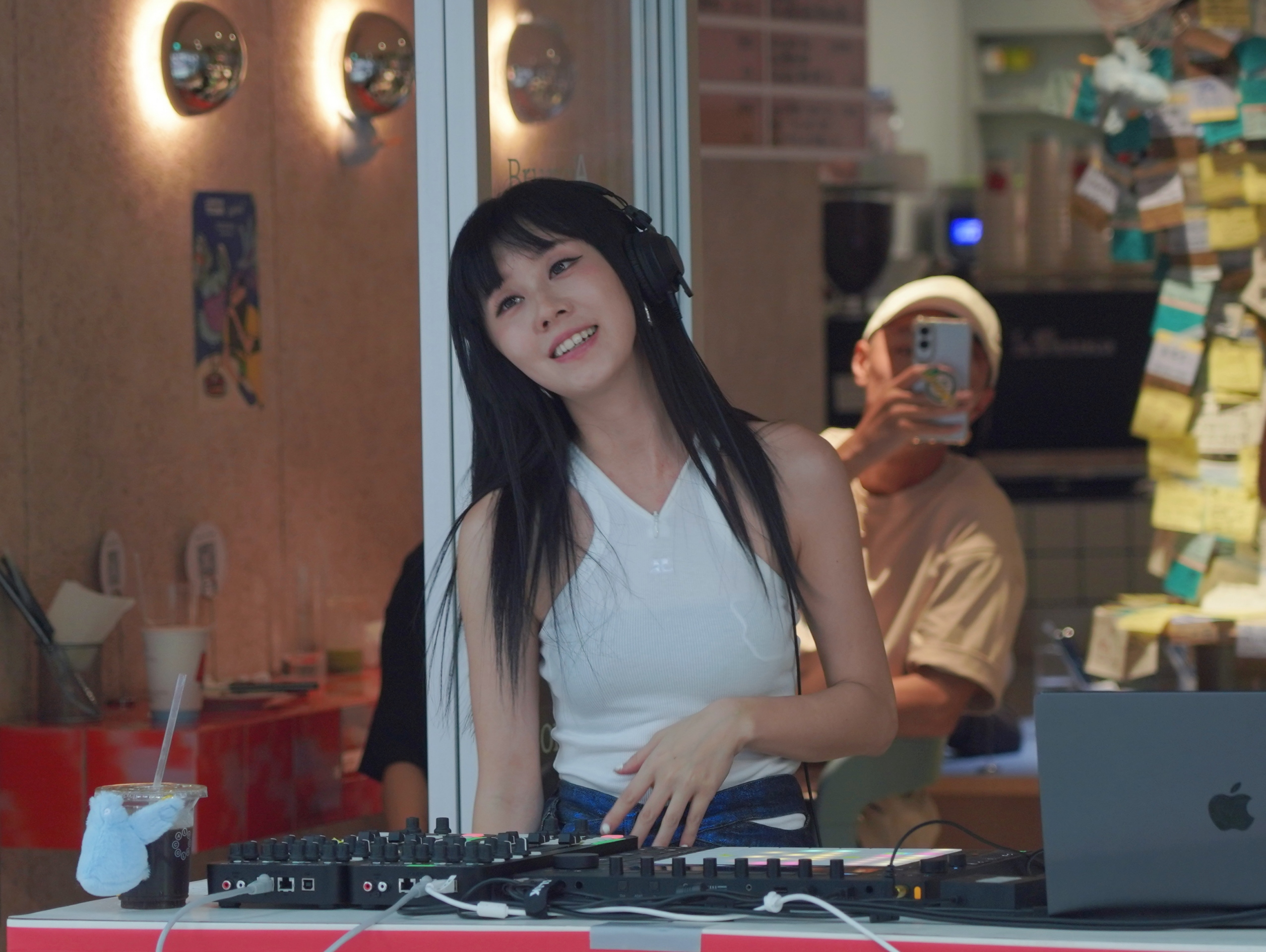 這是白安首次以DJ播歌的形式與大家見面,在人來人往的都是商圈裡,她的演出舞台與觀眾區隔著一條馬路小巷,觀眾則在公園中或坐或站,也有不少人隨著節奏起舞,讓中山街頭瞬間化身最chill的臨時舞台,與百位觀眾一起進入異想的星期八中。這是白安第一次在路邊擔任DJ,隔著一條馬路與觀眾互動,讓她覺得既新鮮又有趣,她笑說:「這種感覺很特別,很開心、很chill!」看到觀眾不畏旁人眼光自在起舞,她也開心表示:「看到有人在跳舞、在星期八裡自由地享受音樂,看起來超開心!讓我的心情也跟著開心起來呢。」