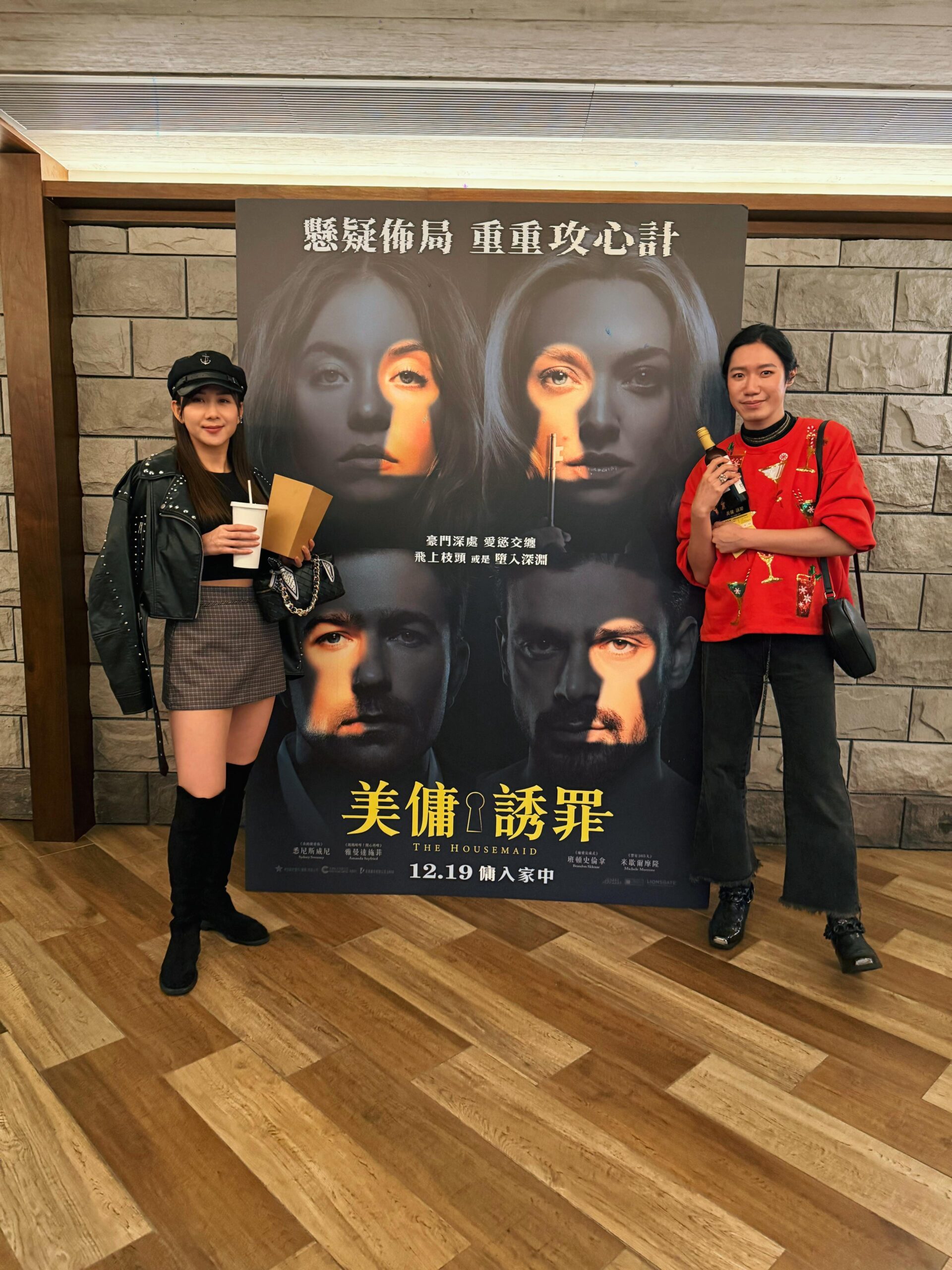 女星阮兒(Chloe)曾演出多部入屋電視睇外,一向愛唱愛跳,更一直增值自己去學唱歌。直到《中年好聲音4》的機會來了, 以幪面「馬騮精」角色出場跳唱《烈焰紅唇》的Chloe令現場氣氛澎湃,惜最後未能晉級。不少網民留言替Chloe不值。Chloe回覆表示尊重每個活動大會的安排, 事前也不知道大會的setup才選了跳唱歌,每一次演出及挑戰自己的機會都是一個好好的Lesson。她更表示她會再接再厲,以最Fit的狀態站上下一個跳唱舞台。日前Chloe與好友形象指導許嘉浩(Karl Hui)相約去看電影《美傭誘罪 (The Housemaid )》VIP 優先場。Karl表示知道Chloe喜歡刺激及看外國懸疑電影,趁年尾壓軸電影約相聚及喝一杯過節。更力撐Chloe多年在不少朋友聚會及Annual Dinner上唱英文歌都令觀眾大拍手掌,鼓勵她越唱越強。Chloe表示屬TVB簽約藝人,希望新一年多一點拍劇的機會。更盼能演一點之前未演過的角色,二人即時大讚大熱劇集《新聞女王2》Man姐佘詩曼的角色。Chloe直指可以勝任女強人,甚至變態幕後Big Boss的角色。所以有閒餘時間都會相約朋友看有深層次的戲增強演技備戰。Karl更透露即將於新一年往台灣、馬來西亞及泰國三地為新一輯好聲音歌唱比賽擔任評判及發掘新血,更會為最終勝出者的新歌MV任形象指導。